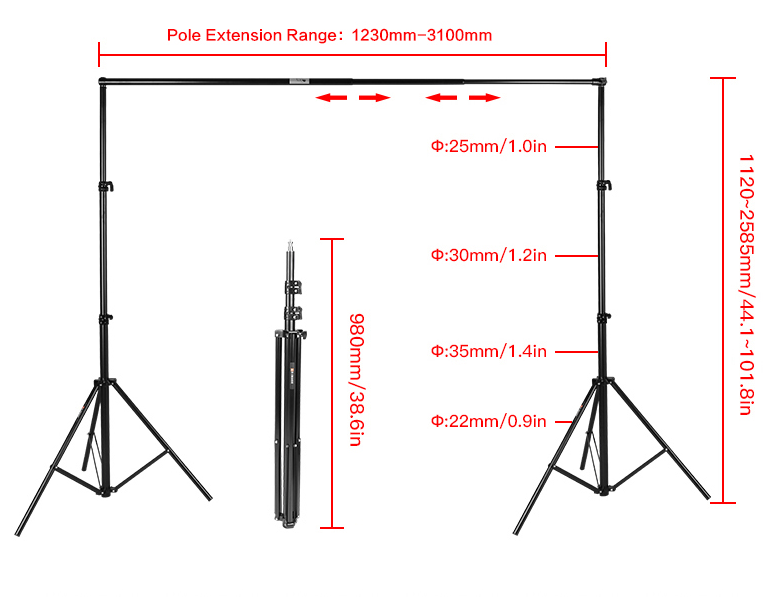 | אורך סטנד סגור | 127-315 ס"מ / 50-124 אינץ' |