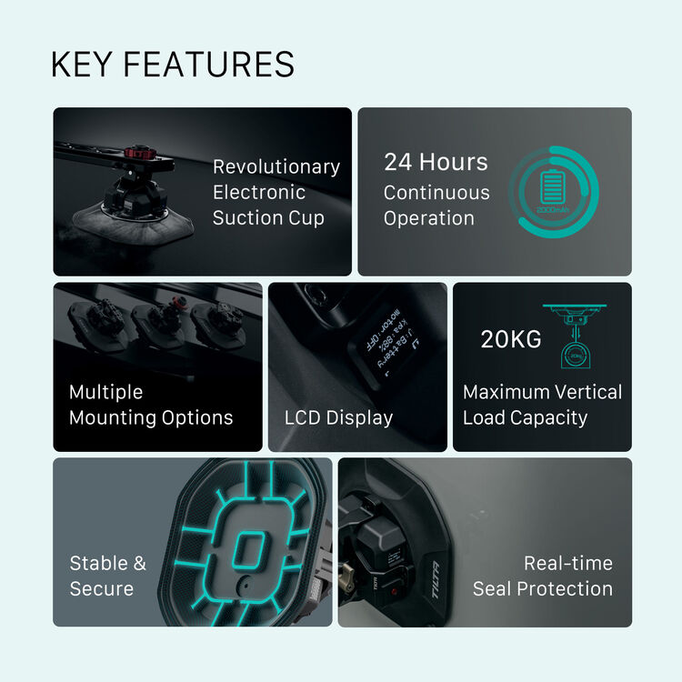 שדרגו את מערכת ה-Hydra Alien שלכם עם פתרון אבטחה אלקטרוני חכם. ה-Suction Cup האלקטרוני בקוטר "4.5 מצויד בתושבת M25 ייעודית, המאפשרת אינטגרציה חלקה עם זרועות המערכת לצילומי רכב מורכבים. המערכת כוללת מנוע חכם המבצע "שאיבה אקטיבית" – הוא מזהה דליפות אוויר זעירות ומפצה עליהן אוטומטית על ידי הפעלת המנוע מחדש, מה שמבטיח אחיזה רציפה ובטוחה לאורך זמן. עם סוללה חזקה ל-8 שעות עבודה ומסך LCD לניטור מיידי, מדובר בשיפור משמעותי לבטיחות הציוד היקר שלכם בתנאי צילום דינמיים.