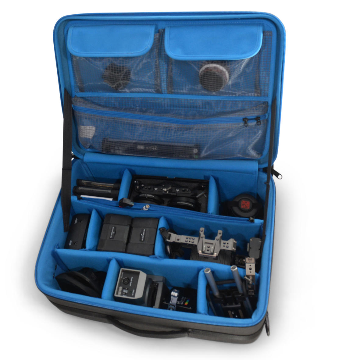 | ארגון פנימי | 2 מחיצות ארוכות (אחת עם נרתיק רוכסן) ו-6 מחיצות קטנות להתאמה אישית מלאה. |